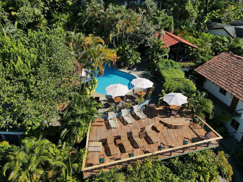 Das ruhige Bungalow-Hotel liegt von purer Natur umgeben direkt am Fuße des Vulkanes Arenal und dem Cerro Chato. Das Gelände ist leicht abfallend und bietet einen tollen Blick über die nördliche Tiefebene und den Vulkan.