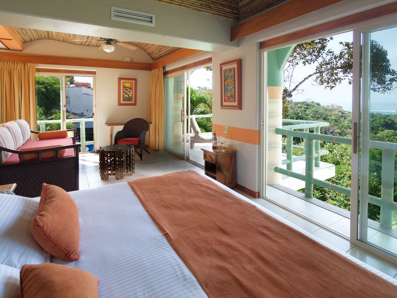 Alle Zimmer bieten eine eigene Terrasse mit Schaukelstühlen und Blick auf den Vulkan Arenal, umgeben vom tropischen Garten; ein Kingsize oder 2 Queensize-Betten, Klimaanlage, Deckenventilator, Kühlschrank gefüllt mit Softgetränken (gratis), Kaffeemaschine (Kaffee und Tee gratis), Telefon, Kabelfernsehen, kabelloses Internet, Zimmersafe sowie Privatbad mit Dusche und Haartrockner.