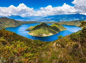 | 3 | Quito - Otavalo - Kratersee CuicochaHeute fahren Sie entlang der Seenroute nach Otavalo im Norden Ecuadors, das für seinen farbenfrohen Markt bekannt ist. Dort angekommen fahren Sie mit Ihrem lokalen Guide zum Kratersee Cuicocha (Meerschweinchensee), ein Kratersee auf 3.200 m Höhe. Seine unglaubliche Farbe und die beiden Inseln vulkanischen Ursprungs mit ihrer exotischen Flora und Fauna machen diesen Ort zu etwas Besonderem. Am Kraterrand können Sie kürzere Wanderungen machen und die Natur genießen. Bei guter Witterung haben Sie einen schönen Ausblick ins Tal von Otavalo und auf die umliegenden Vulkane Cotacachi, Imbabura und Cayambe. Anschließend geht es zu Ihrem Hotel nach Otavalo.