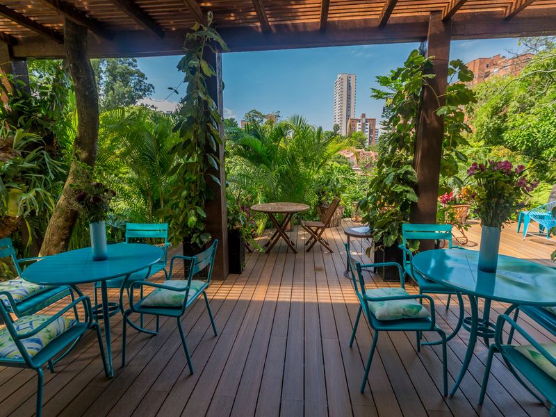 Das Hotel Patio del Mundo bietet viel Charme, Ruhe und Wohlbefinden. Dazu einen tropischen Garten und einen einmaligen Ausblick auf Medellín. Das kleine Hotel besteht aus sieben Zimmern, welche sich in 2 Standard Zimmer, 3 Junior Suites und 2 normale Suites aufteilen. Außerdem bietet das Haus kostenfreies W-Lan, einen Leseraum, Liegestühle im Garten, Parkplätze, ein Sonnendeck und einen Whirlpool.