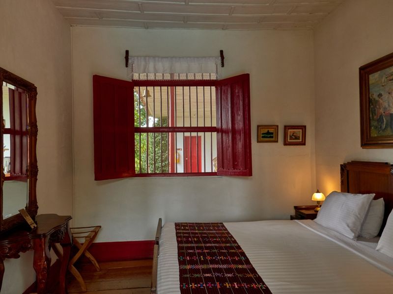 Jedes der neun Zimmer und Suiten ist ein Unikat und reflektiert eine wichtige historische Etappe der kolumbianischen Geschichte seit der Conquista bis zur Unabhänigkeit. Die Zimmer bieten außerdem exklusive Badewannen, Klimaanlagen, Decken-Ventilatoren, eine Minibar, Sateliten TV und Wifi-Zugang.