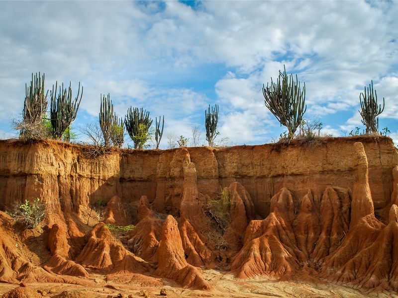 | 2 | Villavieja - Tatacoa Wüste - San AgustínBei der Fahrt von Villavieja nahe der Tatacoa Wüste nach San Agustín haben SIe die Möglichkeit, die Wüste zu besuchen. Diese 330 quadratkilometergroße und damit zweitgrößte Trockenzone des Landes beherbergt zwei Gebiete, eines aus rotem Ocker und eines aus grauem Fels, welche je von beeindruckenden Formationen und Kakteen gesäumt sind. Somit zählt die Tatacoa zu Kolumbiens schönsten und zugleich bizarrsten Landschaftsbildern. Sie werden hier Zeit für einen zweistündigen Rundgang haben - ein Erlebnis von faszinierender Schönheit.