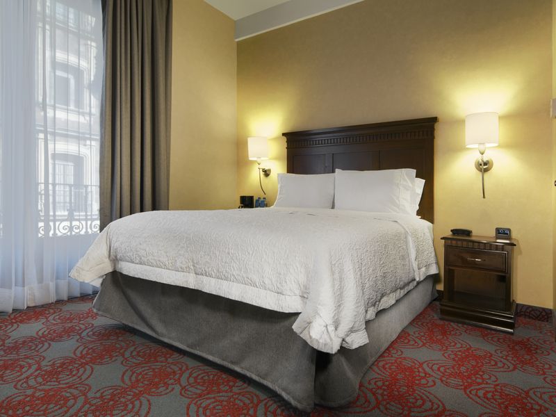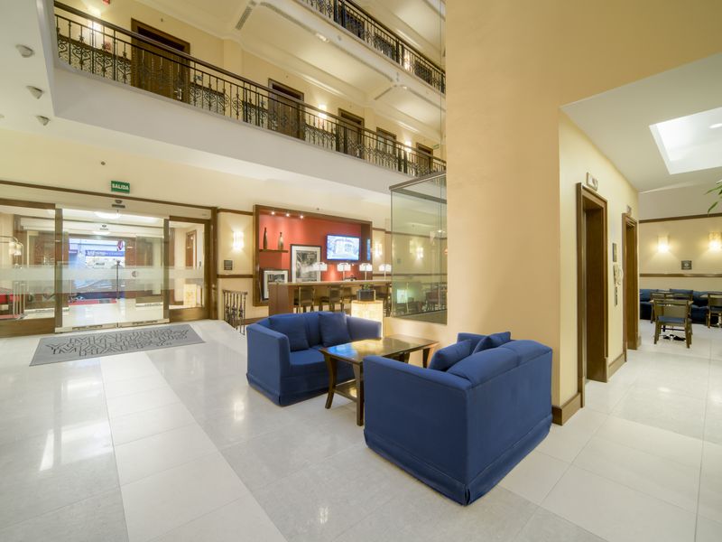 Das historische Hotel Hampton Inn & Suites liegt mitten im Herzen der Altstadt von Mexiko-Stadt, nur 2 Blocks vom Zócalo, dem Hauptplatz der Stadt entfernt. Zahlreiche kulturelle und historische Sehenswürdigkeiten befinden sich in unmittelbarer Nähe. Das Hotel verfügt über 108 geräumige und modern eingerichtete Zimmer, wahlweise mit King- oder Queen-Size-Betten, die mit TV, gratis WLAN, Schreibtisch, Kaffemaschine, Bügeleisen, Wecker und privatem Bad mit Fön ausgestattet sind. Die 49 Suiten bestehen aus 2 Räumen mit separatem Schlafzimmer. Das Hotel verfügt außerdem über ein Restaurant, eine Bar sowie ein Fitnesscenter. Eine 24-Stunden-Rezeption, Zimmerservice und ein Wäscheservice gehören ebenfalls zum Dienstleistungsangebot des Hotels.