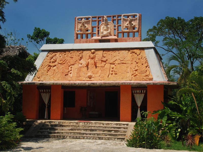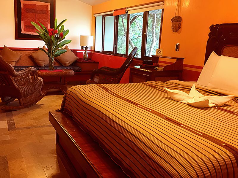 Das Boutique Hotel Quinta ChaNabNal, eingebettet in tropischer Vegetation, versprüht eine magische und unvergessliche Atmosphäre. Es befindet sich nur 3 Kilometer von der archäologischen Stätte Palenque entfernt und ist somit idealer Ausgangspunkt für Ausflüge zur historischen Ausgrabungsstätte. Das stilvolle Hotel verfügt über 7 Luxus-Suiten, welche nach dem Stil der Maya Paläste eingerichtet sind. Die klimatisierten Suiten sind mit einem Flachbild-Kabel-TV und einem Ventilator ausgestattet. Jede verfügt über einen Schreibtisch sowie eine Minibar mit gratis alkoholfreien Getränken, Bier und Wasser. Zu den Annehmlichkeiten gehört ein Balkon mit Gartenblick. Im eigenen Badezimmer liegen ein Haartrockner, Hausschuhe und Pflegeprodukte bereit. Das im Maya-Stil erbaute Hotel verfügt außerdem über einen Außenpool mit Wasserfällen, kostenloses W-LAN, ein Fitnesscenter und einen Wellnessbereich im Garten. Das hoteleigene Restaurant bietet neben internationalen Speisen auch Spezialitäten aus Chiapas und Guatemala an.