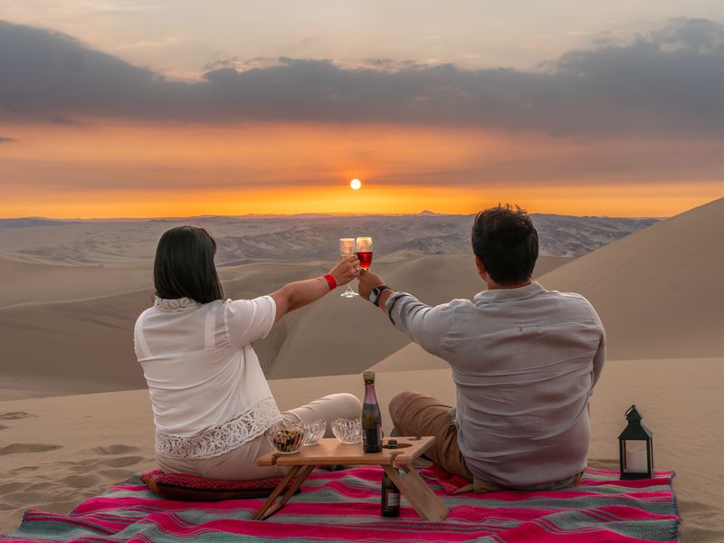 Gut ausgeruht, aber noch vor den Vögeln, starten wir in einen sehr spannenden Tag. Wir fahren zunächst auf der Panamericana gen Süden, vorbei an Stränden und Dünen. Das erste Highlight des Tages ist eine Bootstour zu den Ballestas Inseln, die als wahres Tierparadies bekannt sind. Auf den ungewöhnlich geformten Felsen der Inseln nisten zehntausende von verschiedenen Seevögeln wie z.B. Pelikane und Blaufußtölpel. Die eigentlichen Hauptdarsteller sind aber die possierlichen Seelöwen und mit etwas Glück springen sogar Delfine um unser Boot herum. Wieder auf dem Festland, widmen wir uns dem Nationalgetränk Perus: dem Pisco. Wir besuchen eine der alten und traditionellen Bodegas und werden bei einer Führung etwas über die Herstellung lernen, um uns anschließend zu einigen Kostproben überreden zu lassen. Nach einer kurzen Fahrt erreichen wir unser Tagesziel, die Oase Huacachina. Hier erwartet uns eine Atmosphäre wie aus 1001 Nacht, die einfach zum Bleiben einlädt. Die Oase, deren Zentrum eine kleine Lagune bildet, liegt inmitten hoher Sanddünen. Wer noch nie in der Sahara war, kann es hier erleben, vor allem auf einer atemberaubenden Buggytour (optional, Preis ca. 23,- USD) durch das endlos erscheinende Dünenmeer. Ein echtes Erlebnis!