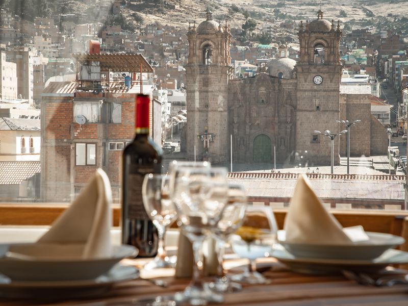 Ein Höhepunkt des Hauses ist das Restaurant auf der Sky‑Ebene, das nicht nur mit peruanischer Küche verwöhnt, sondern auch einen panoramischen Blick über die Stadt Puno und den Titicacasee bietet – ein perfekter Ort für ein gemütliches Frühstück oder einen Sundowner nach Sonnenuntergang.
